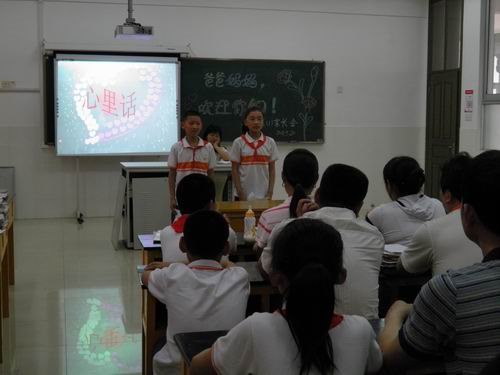 这是一场特殊的家长会,热点无疑是向父母说说心里话这个环节。伴随着《烛光里的妈妈》悠扬的背景音乐,同学们将自己精心制作的写着心里话的卡片交给了爸爸妈妈,有的还轻轻地读给爸爸妈妈听。家长们静静地看着,静静地听着,整个教室只有动听的音乐在回旋,许多同学和家长都流下了眼泪,场面非常感人。