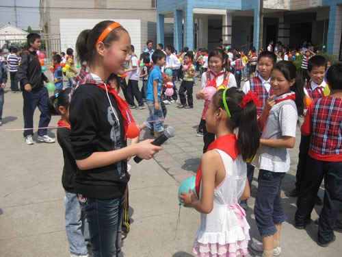 惊喜三:一场热闹非凡的猜谜游艺活动。一只只五彩缤纷的汽球,一条条新奇有趣的谜语,学校老师们为同学们布置出了一个五彩斑斓的“球”谜大世界。同学们在看完电影后纷纷涌向操场,争先恐后地奔向了汽球,猜起了上面的谜语。一张张可爱的笑脸上的表情顿时丰富起来。有的皱起了眉头冥思苦想,有的猜出了谜语暗暗高兴,大多数同学因为得到了气球和奖品欢呼雀跃起来。孩子们的眼中闪烁着兴奋的光芒。