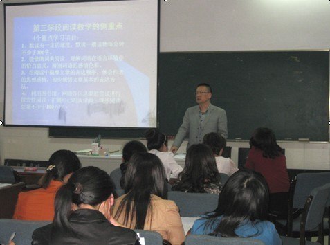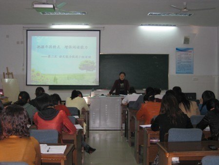 金玉主任就今天的两节课作了精彩的点评。并结合“如何正确把握年段特点,有效增强阅读理解能力”给每一年段的阅读教学提出了具体的要求。金主任不愧是一位科研型、实干型的专家,她总结了自己多年来在教学一线积累的宝贵经验,给所有的语文教师提供了实用高效的帮助,让大家都觉得获益匪浅,颇有豁然开朗之感。