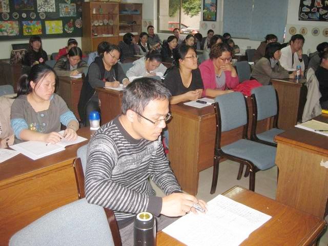 白舜华老师作了一个关于《让学生在差错中得到成长——例谈错误资源的有效利用》的精彩讲座。白老师这一讲座和她的课堂教学一样,给人一种形象生动、充满激情的感觉。首先,白老师明确的点出了目前数学课堂教学中存在的三种对待错误的典型现象,然后结合了自身多年的课堂教学中积累下来的典型例题,谈了在教学中如何对待在课堂中出现的错误资源。她的讲座理论联系实际,生动具体,给大家以很好的启迪。