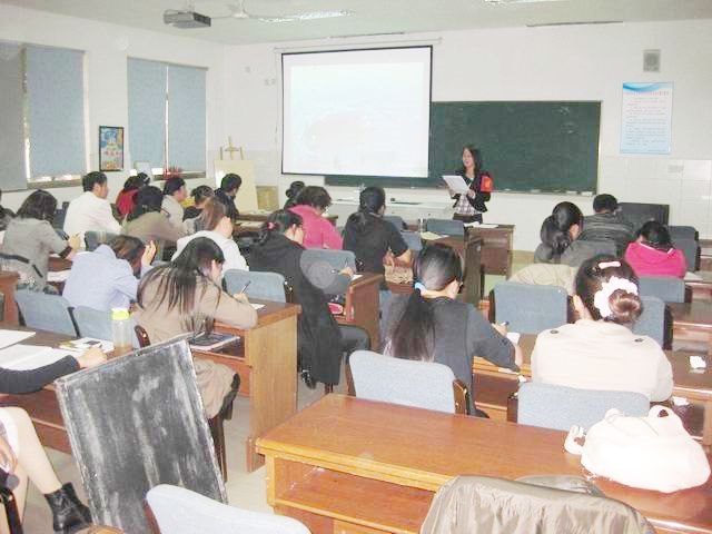 白舜华老师作了一个关于《让学生在差错中得到成长——例谈错误资源的有效利用》的精彩讲座。白老师这一讲座和她的课堂教学一样,给人一种形象生动、充满激情的感觉。首先,白老师明确的点出了目前数学课堂教学中存在的三种对待错误的典型现象,然后结合了自身多年的课堂教学中积累下来的典型例题,谈了在教学中如何对待在课堂中出现的错误资源。她的讲座理论联系实际,生动具体,给大家以很好的启迪。