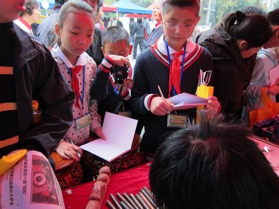 令我最感兴趣的还是《武进日报》寻访传统手工艺系列活动中的区级非遗项目。我们几个小家伙在人群中串来串去,看得眼花缭乱,这里有手工做百叶的,有手工做鹞灯的,还有做面塑的……一件件巧夺天工的手工艺品摆满了台子,吸引了许多围观的人。
