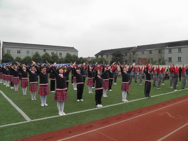 每次更换新的广播操对于全校师生来说都是一项不简单的任务。体育老师们暑假就开始培训,开学之后全体班主任、副班主任抓紧空余时间争分夺秒地学习。体育课,大课间,两节课后,一个个班级,一群群孩子,跟着老师一招一式学做新操。高年级的孩子学起来比较顺利,最艰难的就是一二年级的小朋友。不论老师们的示范做得多么到位,等到孩子们表现出来总是五花八门、千奇百怪。老师们的嗓子哑了,小朋友们哭鼻子了……但是新的广播操,却在一天比一天整齐,一天比一天规范。