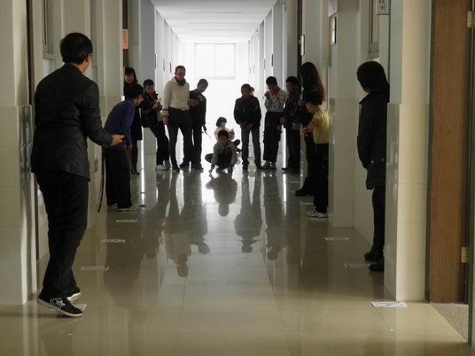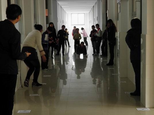 F1场地虽然占地小、竞赛用车体型也很小,但丝毫没有减退同学们的参赛热情,你瞧,场外攒动着一个个观望的小脑袋,都在关切地关注着比赛的进程。