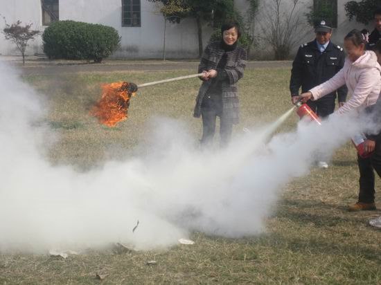 中午12点15分,火灾警报声响彻校园上空。各位老师按预先分工立即到达指定岗位,引导教学楼内学生快速疏散,各班班主任带领学生弯着腰、猫着步,用手帕、毛巾等捂住口鼻,沿着学校指定楼梯口快速下行,有序撤离到学校操场的安全地带。随即各班清点人数,并层层向上汇报,演练共用时4分钟左右,500多名师生全部安全疏散完毕。随后总务管敏老师进行了如何使用灭火器灭火的现场讲解和演示,师生们认真观摩并亲自体验了现场灭火过程。最后,王华英校长对本次活动作了总结点评:这次消防疏散演练活动预案周到、准备充分、实效良好,今后,像这样的防灾自救的训练要更加规范化、经常化,让安全意识深入到每位师生心中,从源头上杜绝各种灾害事故的发生。