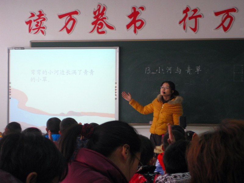 活动伊始,丁晓雪老师为我们执教了一年级上册《小河与青草》的第二课时。丁老师的课堂语言、肢体语言、表情等都非常丰富,对学生有很强的吸引力,富有感染力。再配合精美的课件,比如理解“长满”,老师通过多媒体课件演示“种草”,让学生在兴趣盎然中理解这个词,从而更好地通过朗读表达出来。孩子在丁老师的引领下学习兴趣浓,学习文本的积极性非常高,课堂上节奏明快,师生、生生互动有效,拓展训练扎实,教学氛围民主和谐,吸引了在场的每位教师。