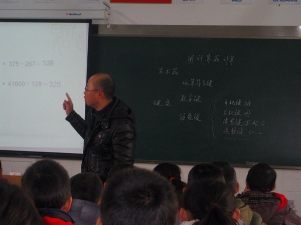 2012年12月19日,星期三上午第一节课,四年级数学组老师齐聚四年级四班教室,一起学习了由陈春明老师执教的——《用计算器计算》。