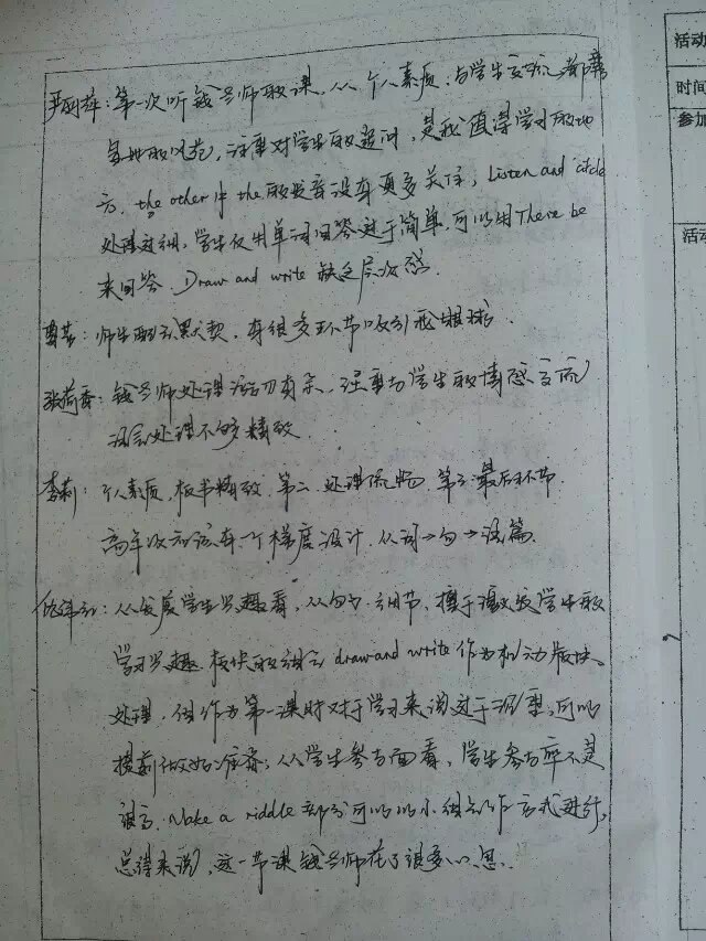 教研活动是一个不断学习、精益求精,不断提高我们英语教师素质的实践过程,也是一个享受和收获的过程。