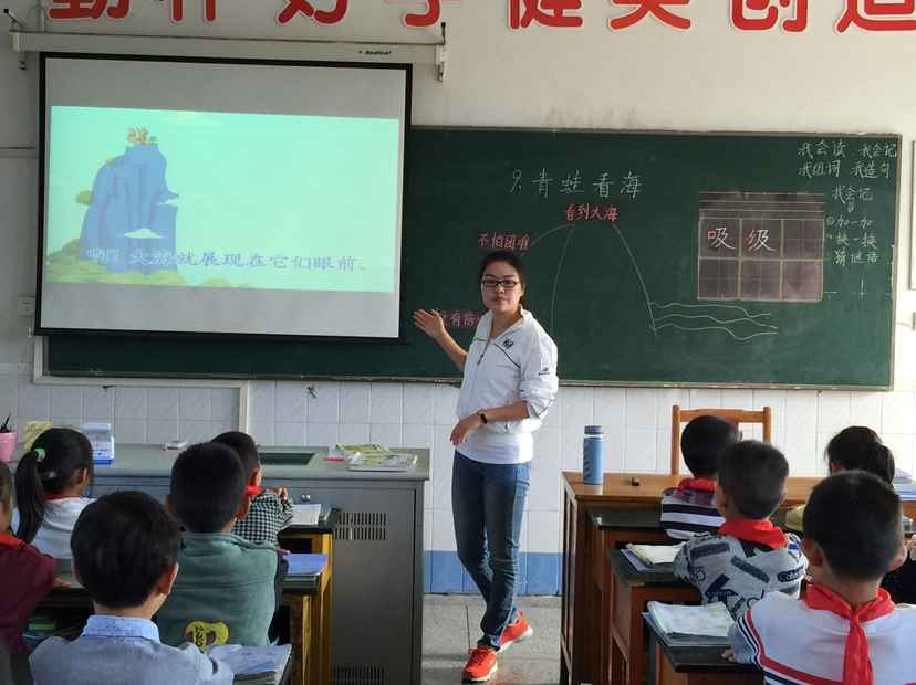 随后,王丽丽执教了《青蛙看海》第二课时,王老师的课堂,生动活泼,富有朝气。为了让学生体会山的高,教师在黑板上画了一座山。体会山高难登让孩子学小青蛙跳的时候,课堂气氛得到了活跃。终于登上山顶,教师让学生倒数5个数时,孩子们都屏息凝神,铆足了劲,课堂气氛一下子被王老师富有时代气息的巧妙设计带动了起来。如果这时出示一张大海的图片,孩子的积极性一定会高涨,最后一小节的朗读也就不在话下了。整堂课王老师对小青蛙那种坚持不懈的努力精神还强调不够。