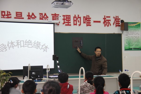 第二节课是由马杭中心小学的徐伟杰老师执教的《导体和绝缘体》。这堂课主要是在学习了简单电路的基础上,让学生将各种物体放到电路中去检验其导电性能,从而认识导体和绝缘体。徐老师的课堂教学活动设计了以下几个方面:连接一个简单电路,学会用简单电路检测物体的导电性能;认识人体和大地以及自然界的水也是导体,并通过万用电表发现导体的导电性能是有差异的;引导学生关注生活中的用电知识,规范自己的用电行为,注意用电安全。整堂课条理清晰,老师的个人专业素质较高,课堂驾奴能力强,给学生和听课老师都留下了深刻的印象。