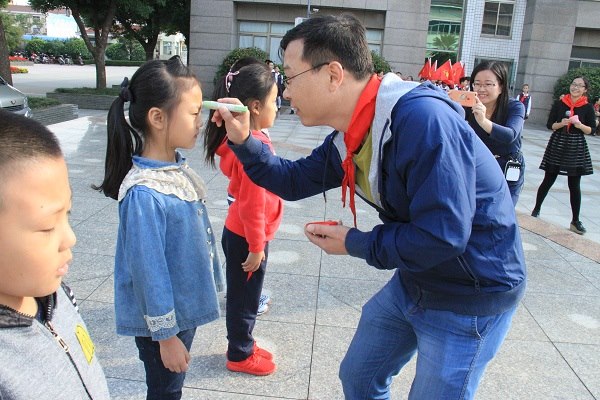 随即大队长宣读了各中队辅导员及新队员名单,并且由五年级的大哥哥大姐姐给新队员佩戴红领巾,摸着胸前飘扬的红领巾,少先队员们将“从小学习做人、从小学习立志、从小学习创造”、“立志向、有梦想,爱学习、爱劳动、爱祖国”、“热爱党、热爱祖国、热爱人民,有知识、有品德、有作为”的希望和要求誓言铭记在心,并且表示:虽然来自五湖四海,但能在马小这样一个大家庭中快乐学习,感到无比幸福!