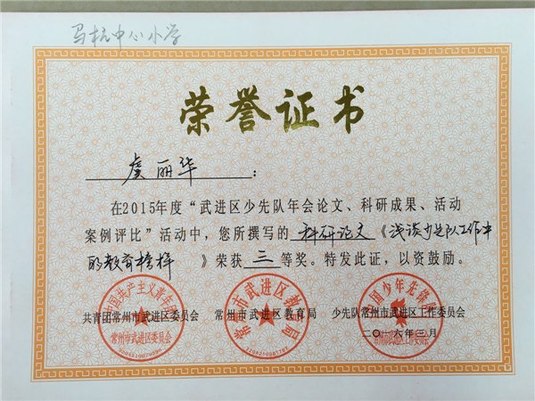 虞丽华 区级三等奖《浅谈少先队工作中的教育榜样》