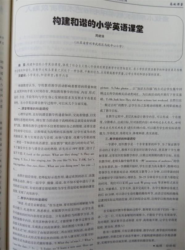《构建和谐的小学英语》发表在2016年5月《新课程》