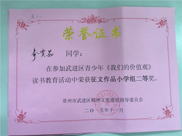 《我们的价值观》获征文作品二等奖