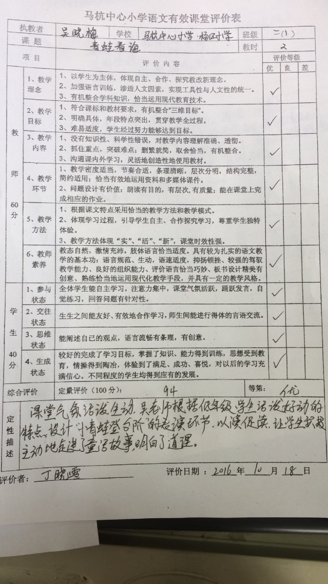 金风送爽,秋意浓浓。10月18日下午,二年级全体语文老师参加了以“培养积极人格,走进幸福童话”为主题的教研活动。本次活动由孙莉老师执教《青蛙看海》第一课时,吴晓梅老师执教《青蛙看海》第二课时。