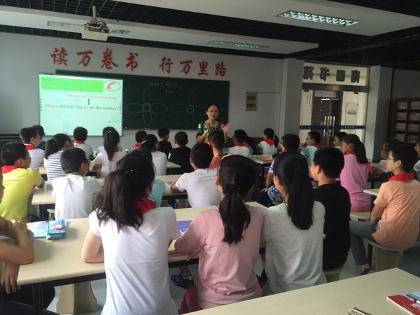 李莉老师在师生的话轮轻松转换中,巧妙融入生活元素,911特别纪念日,开放日以及中国的传统节日。李老师以自己的旅行日记导入新课,顺势开启主人公的上海之旅,引导学生用整体泛读、部分精读的方法快速获取语篇信息,并能借助图片或关键词对语篇进行结构把握。李老师利用文本信息进行多维度“追问”,而学生提出高思维含量的问题,激荡出思维的碰撞波。学生们在品读文本后,自我领悟诵读的重要性,从而有效地促进高年级的诵读能力。