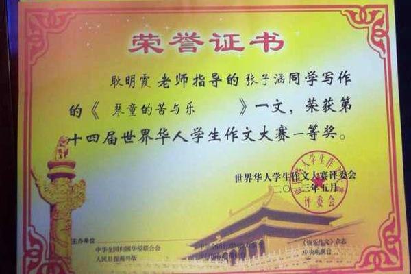 华人作文大赛获奖证书