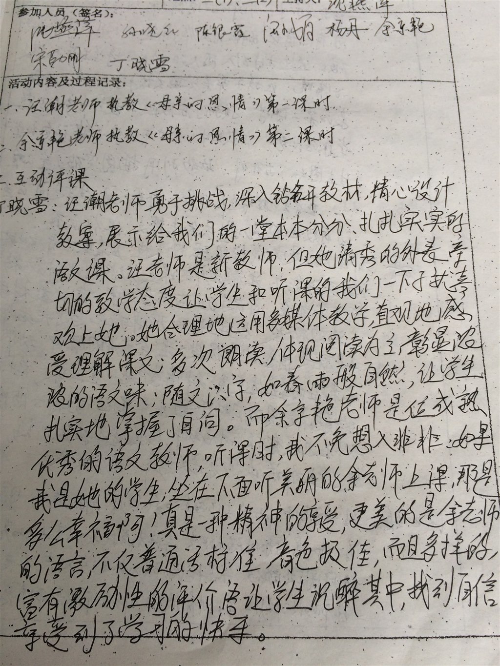 1、同学们,此时你们一定想到了自己的母亲,你的妈妈平时为你做了什么?你想对妈妈说些什么或做些什么呢?(师点评:你真是个孝顺的好孩子!你已经长大了!你懂得体谅、关爱妈妈了!……