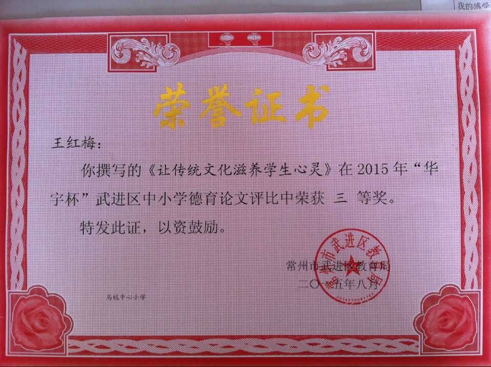 姓名:王红梅 单位:常州市武进区马杭中心小学