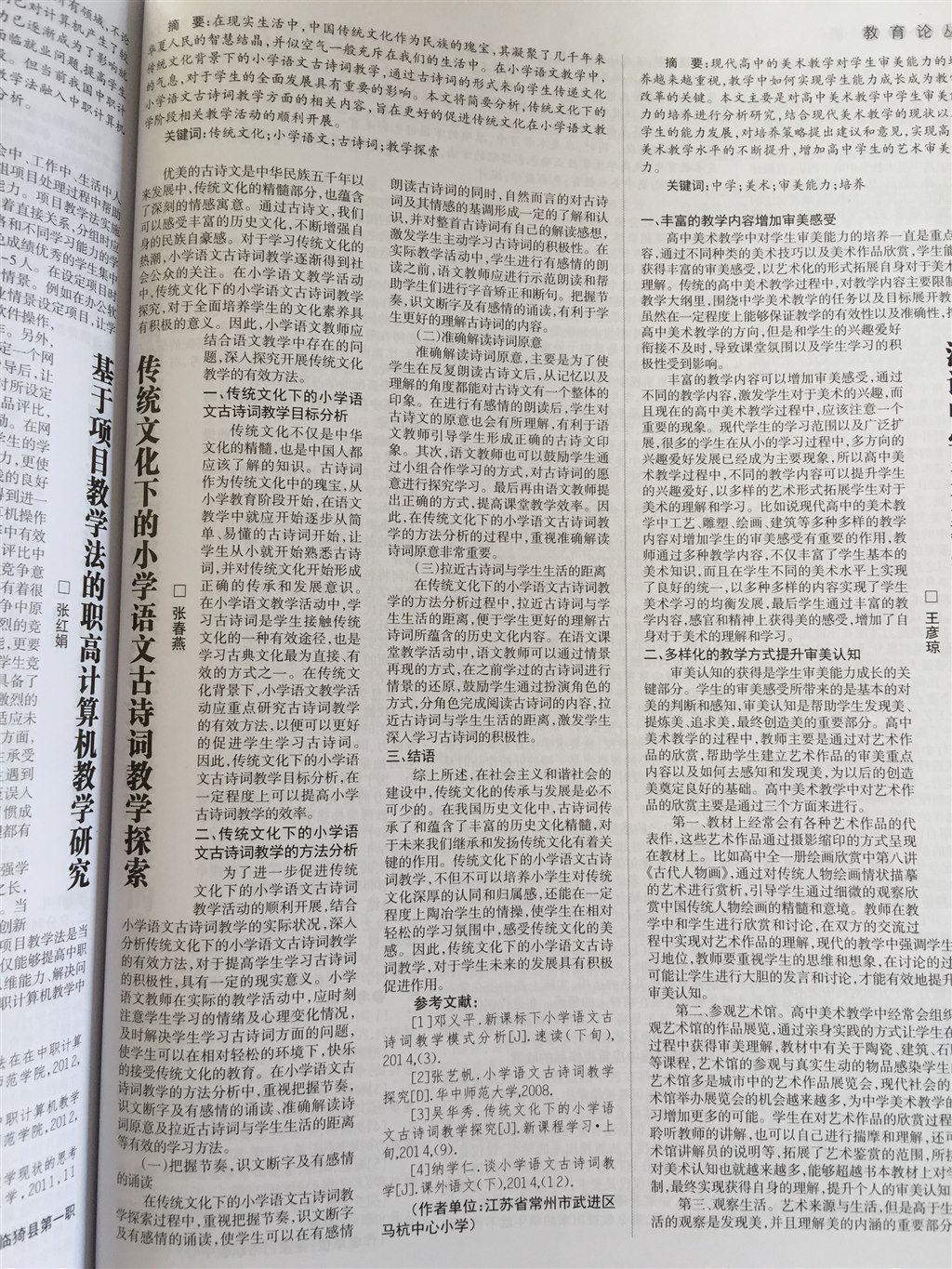 张春燕发表论文《传统文化下的小学语文古诗词教学探索》