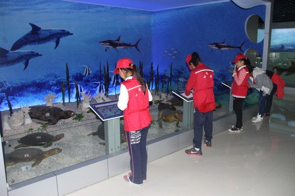 走进省前中动物博物馆,犹如走进了异彩纷呈的动物世界,林林总总的标本神情逼真地展示各自的姿态:有的憨态可掬,逗人喜爱;有的龇牙裂嘴,凶相毕露;有的活泼机灵,自然天成。博物馆内,平日里难得一见的珍稀动物标本也让孩子们一饱眼福。如“长江鱼王”中华鲟、“鸟中之王”秃鹫、“蛇中之王”蟒蛇、“百兽之王”东北虎……负责老师娓娓讲述,该馆始建于1954年,馆内标本有的是该校生物教师亲手制作,有的是筹资购买和接受赠送的。现有1200余种剥制、浸制、干制、骨胳、胚胎、化石玻片等类型的标本,其中有国家一级保护动物33种,国家二级保护动物89种,博物馆以动物进化历程、动物分类为主线,通过文字介绍及图片、化石标本、动物标本等展示手段重点介绍动物进化的历史。小记者们饶有兴致,边欣赏边记录,边聆听边思考。