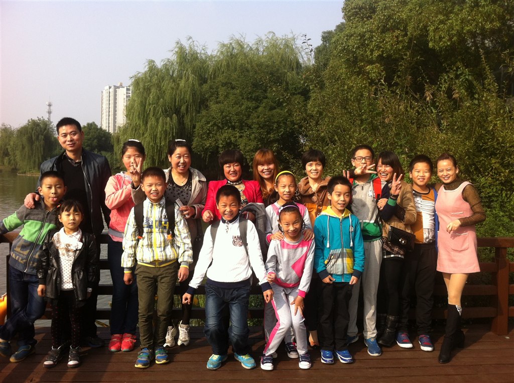 上午9点,七位家长带着自己的孩子在校门口集中,在班主任老师的统一指挥下,前往圩墩公园秋游,一路上欢歌笑语,很快就到达了目的地。