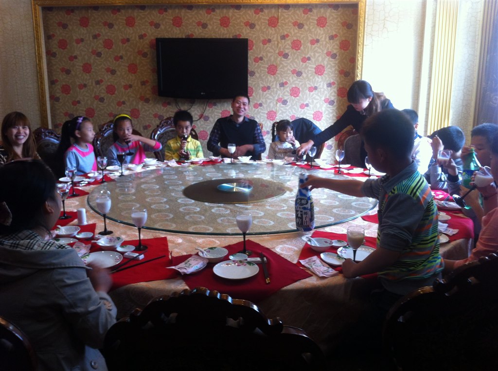 踢完球,孩子们已是满头大汗、饥肠辘辘。我们前往剑湖街上的“金玉满堂”用午膳,满满一桌的人,大家开心地说着、笑着,很好地拉近老师与家长、与学生之间的距离。虽然不是什么饕餮盛宴,但在每个人的心里都觉得无比美味。