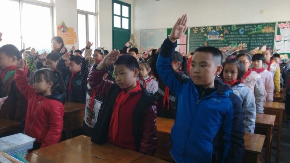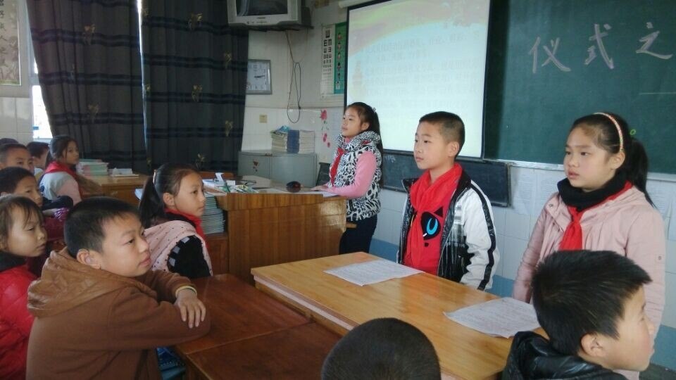 2014年11月14日下午第三节课时,我们四(2)班和三(2)班的同学一起上了一节主题是《学仪式之礼做礼德少年》队课,两个班的正副班主任一起观摩并参与了此次活动。