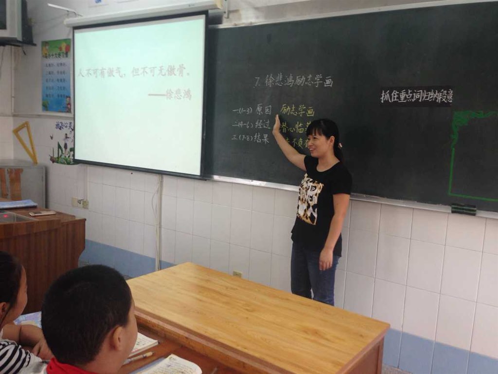 随后吴华秀老师执教了《徐悲鸿励志学画》的第二课时。吴老师的课如春风拂面,给人清新舒畅的感觉。整节课,在吴老师悉心的启发引导下,学生通过自主阅读与讨论,领悟了徐悲鸿为祖国勤学苦练的精神。教学中吴老师引导学生咀嚼、品味、诵读语言,领悟文字的精妙,探求作者构造语言的方式、文本的思维结构,较好地实施了有效教学。