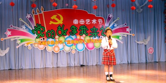 在比赛之前,参赛小选手们都做了充分的准备。别看一、二年级的队员年龄小,比赛中,小选手们个个精神饱满、举止大方、口齿清晰、声调抑扬顿挫。他们有的落落大方,表达流畅;有的天真可爱,表情丰富;还有的时不时配以诙谐的动作,穿插幽默的对话。当台下的小观众们听到了《王二小》、《朱德的故事》、《飞夺泸定桥》、《一个普通党员》等一个个动人的爱国故事时,他们被故事主人公的爱国之情感染着,会场一片寂静,听到动人处不时报以热烈的掌声。