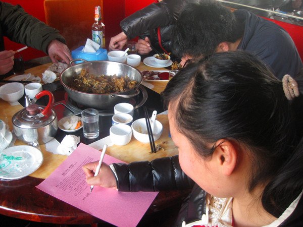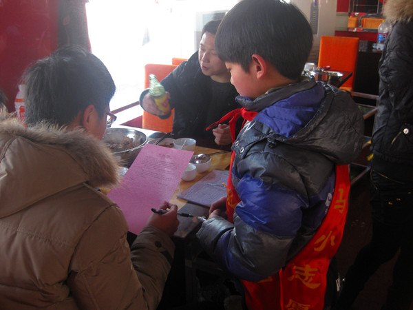 “叔叔(阿姨)好!我是马杭中心小学的大队委员,我们正在做一个社会用餐调查,请问你们点的饭菜如果吃不掉通常会如何处理?……”