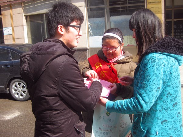 “这是我们队员亲手做的惜福袋,我们想把它送给你们用来打包,也希望能给你们带来好运,祝大家蛇年心想事成!谢谢!……”