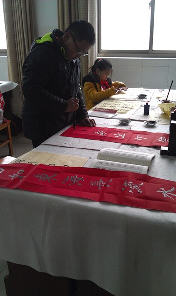 为了让孩子们写好春联,辅导员 蒋 老师元旦前便已布置练习。有的孩子是第一次写春联,很是兴奋,热情很高,说以前家里的春联往往是到街上买,这次能够亲手写,感觉很新鲜。因此,孩子们的练习很认真,他们正考虑着把亲手写的春联挂到家里或者送给哪位朋友呢!