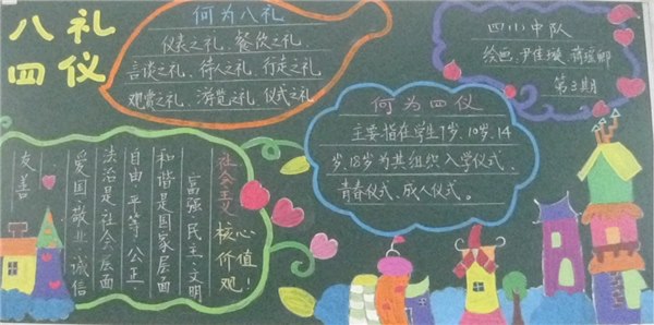 本期板报能围元旦、南田精神以及中国梦、八礼四仪的精神寻找资料,进一步激发了队员从小关心国家大事、学南田精神,文明成长的积极心态。三年级大部分中队及四年级的板报进步显著,值得表扬!具体获奖情况如下:(一等奖加3分,二等奖加2分,三等奖加1分)
