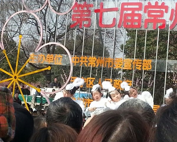 此时,正逢第七届常州梅花节开幕,满园的梅花开得很盛,正是“千朵万朵压枝低”的时候,孩子和家长们尽情在梅花林中欣赏着花朵的娇艳,玩着“表情帝”和“我比你猜”的亲子游戏,比着谁和家长是“心有灵犀一点通”。赞美声、欢笑声不绝于耳。