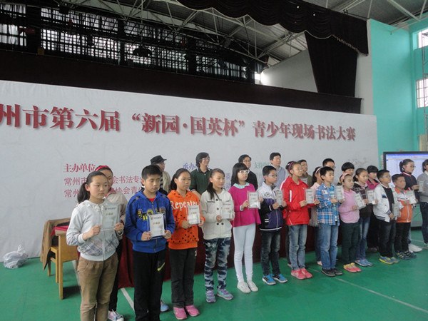 5月11日 ,常州市第六届“新园·国英杯”青少年书法现场大赛在常州市国英小学开赛,来自常州市区及各辖市区书法特色学校的300多名小书法家共同挥毫泼墨,弘扬中华传统文化。马小5位学生参加了此次比赛,全部获奖。鲜金琼同学获一等奖,余朱骏、万方同学获二等奖,田梦枫、徐昕姝同学获三等奖,马杭小学中心小学获团体一等奖。其中,六(1)中队3名南田书法文学社社员在蒋惠芬老师的悉心指导下,在家长的通力配合下,在自身的努力下,成绩斐然,均获得一、二、三等奖。