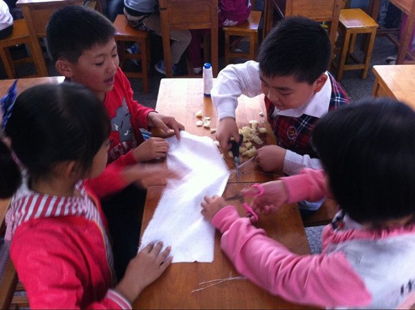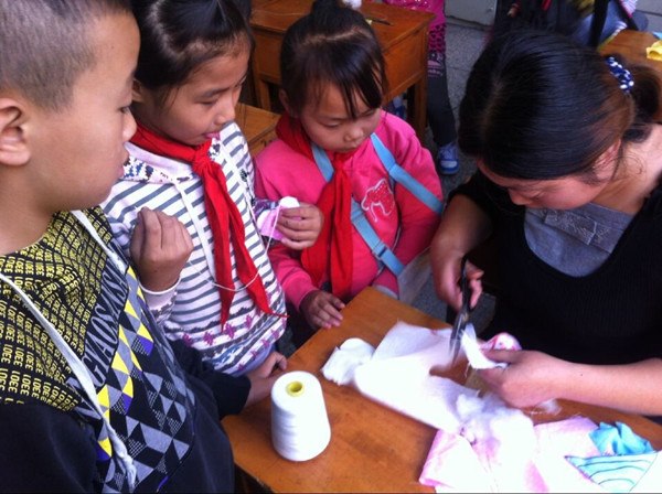 贺妈妈和蔼可亲,深入浅出地讲解了手工布艺制作的关键问题、制作步骤(画、折、剪、缝、填、补),小到针的选择,大到作品的设计,讲解细致入微,生动实用。同时,朱妈妈还结合自己多年的布艺经验,告诉同学们手工制作不仅可以提高艺术鉴赏水平和创造性思维能力,同时还可以培养学生的耐心和恒心。