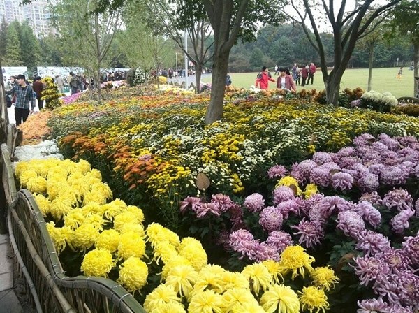 美丽的菊花、欢乐的孩子、幸福的家长组成了青枫公园里一道最靓丽的风景线。