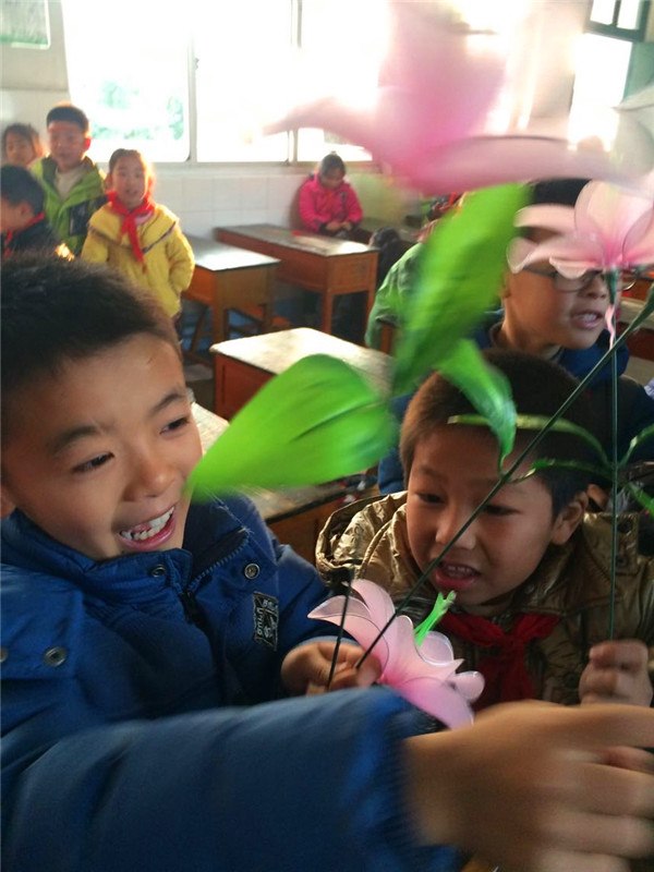 吴妈妈一走进教室,同学们便立即被她手上的一束栩栩如生的鲜花吸引住了,那纯洁的百合,雍容的牡丹,热烈的玫瑰,集聚在这儿,整个屋子仿佛都充满了馨香……走近看,才发现原来是利用丝网制成的。这就是同学们这节课要学习的内容啦!