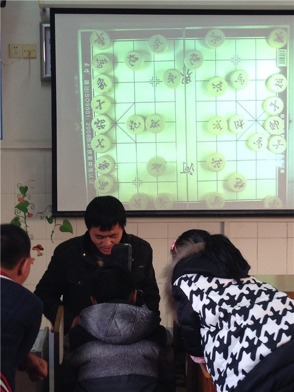 这时,毛老师提出来要让一位同学和曹爸爸PK一下,同学们都纷纷指向吴一凡,一大一小在投影仪下下象棋,两人你来我往,半天没吃一子,一旁观战的同学们七嘴八舌地指点迷津,但他们丝毫不受影响,完全沉醉在两个人的棋局之中。姜当然是老的辣,最终,还是曹爸爸完胜吴一凡。有趣的象棋课在曹爸爸意味深长的话语中结束了,但同学们对象棋的热情却久久挥之不去……