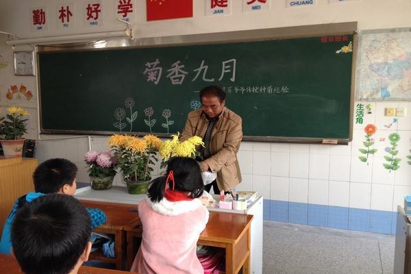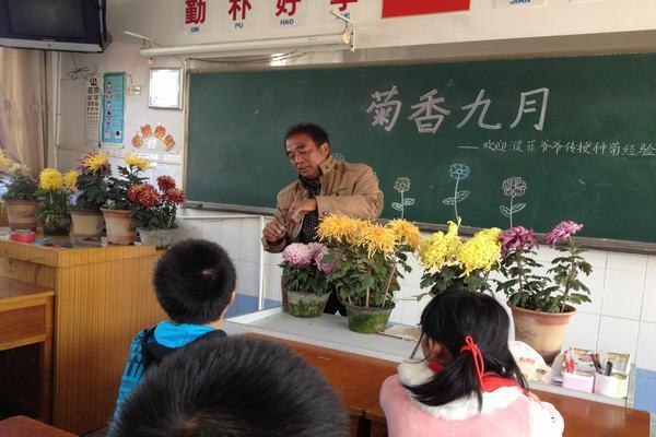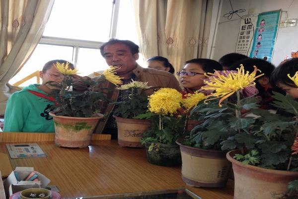 深秋,菊花正是最盛之时,濮菲爷爷给我们带来了许多盆漂亮的菊花,还没上课前,就饱了一饱大家的眼福。中午,濮爷爷准时到来,大家急忙收掉作业,用掌声欢迎他的到来。濮爷爷用一口地道的常州话,给我们上了一堂地道的“授菊”课。他从种菊准备讲到菊花长花苞,从浇水时间到泥土材质,细腻地为我们讲述着,中间时不时用身边的菊花做例子,让我们自行体会。台下的同学们兴趣盎然,认真的听着。在濮爷爷的经验中,我不仅知道了如何种菊,也品味到了种菊花的不容易。