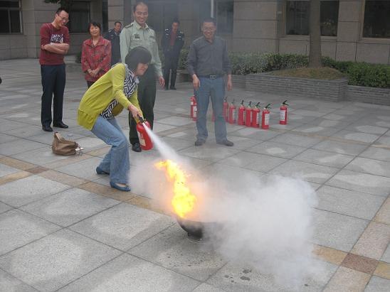 武进特勤中心江拥兵指导员从消防队员的基本职责、火灾基础常识、火灾预防、初起火灾的扑救、灭火器材的使用、火场逃生等消防基本常识对全体义务消防员培训。随后,又带领大家在操场进行实战演练——在空地上放置了油盆模拟火灾,义务队员演示了灭火器的使用方法,并使用干粉灭火器扑救火灾。