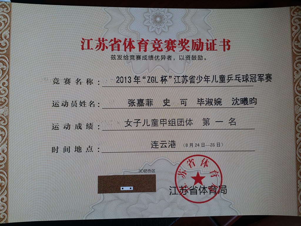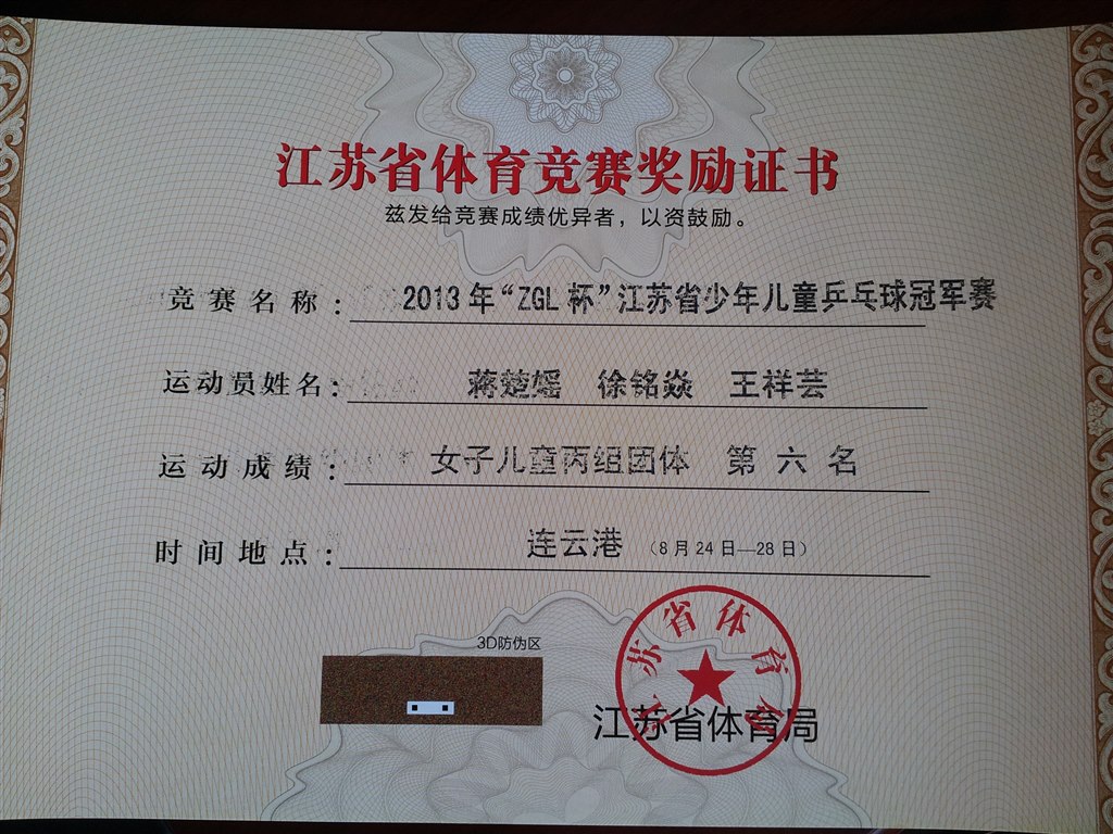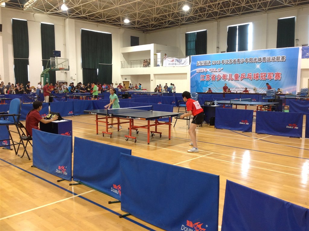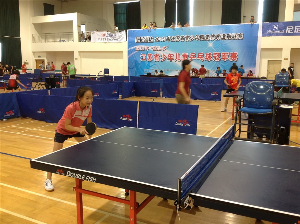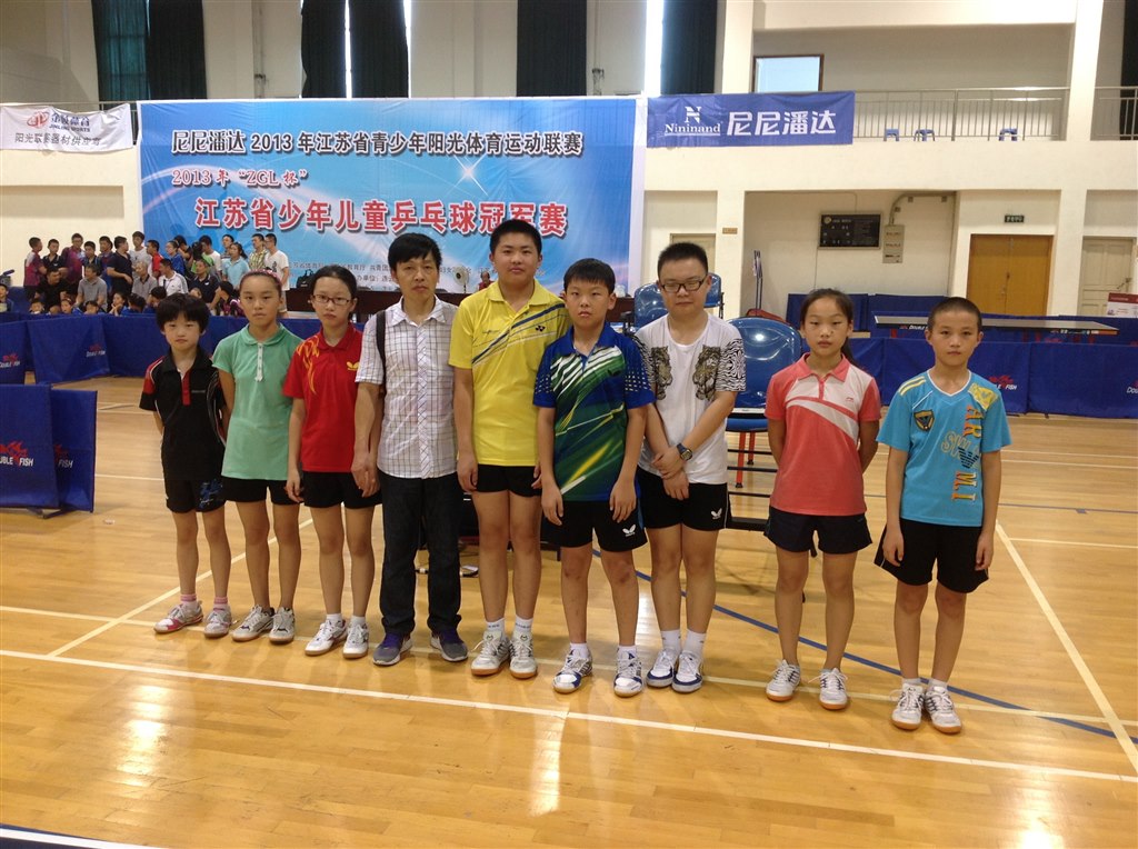 8月24日--8月28日,2013年江苏省青少年乒乓球冠军赛在连云港市举行,乒乓球运动员在此次比赛中获得了女子甲组团体冠军的好成绩!