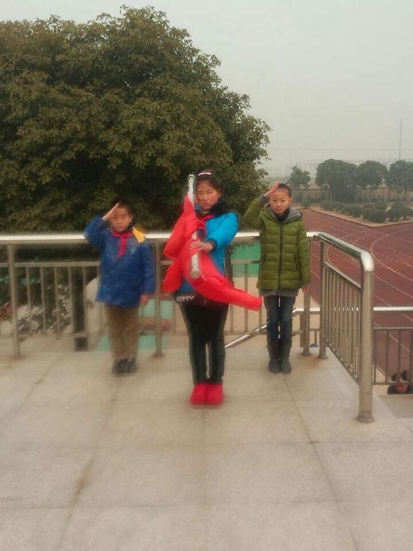 四(3)中队旗手、护旗手事迹 旗手:葛雪(照片中)     他是一个活泼可爱的女孩,在班中担任中队长,是老师的得力助手,老师不在时经常把班级管理的井井有条。在家中也是父母的贴心小棉袄。曾获得“全面发展好学生”“数学大王”等荣誉称号。 护旗手:王静(照片左)     她是一个才思敏捷的小女孩,在班中担任副中队长、英语课代表,也是老师的小助手。她兴趣爱好广泛,如:画画、折纸、书法等。她曾多次获得“全面发展好学生”“四好少年”等荣誉称号。       护旗手:毛振宇(照片右)      他是一个活泼开朗的小男孩,兴趣爱好广泛,如:写毛笔字、弹电子琴等。他特别喜欢弹电子琴,在这方面还获得过“小小演奏家”的奖状。他曾多次获得“全面发展好学生”“四好少年”等荣誉称号。