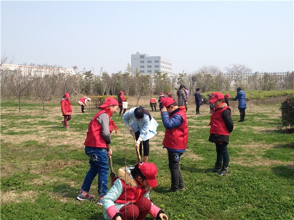 阳光明媚当空照,   小朋友们来树。   我拿铲,你拿水,   护好棵棵小树苗。   绿化祖国大家园, 保护环境我有责。 看着去年今日小伙伴们亲手种下的小树苗,如今已经长大又长高。3月12日,三年级的小队员带着铲子、锄头、瓢盆等工具,来到操场的北面,开始了新一轮的护树活动。 小队员们找到自己种的树,显得异常兴奋。他们拿出自己设计的树牌,挂在树枝上,上面写着中队名称、护绿人、小树名称和护绿口号,这就是他们认养小树的标志。紧接着,队员们拿起铲子锄头开始给小树除草、松土,有的在浇水、施肥,真是有模有样! 此次植树节序列活动的开展,不在于每个人都要在植树节这天去种一棵树,而是通过植树节的又一次来临,使我们大家更加的关注绿化、环保的问题。让孩子们懂得保护环境、爱护树木要从我做起,从身边小事做起,要为处处有绿色出一份力、尽一份心!