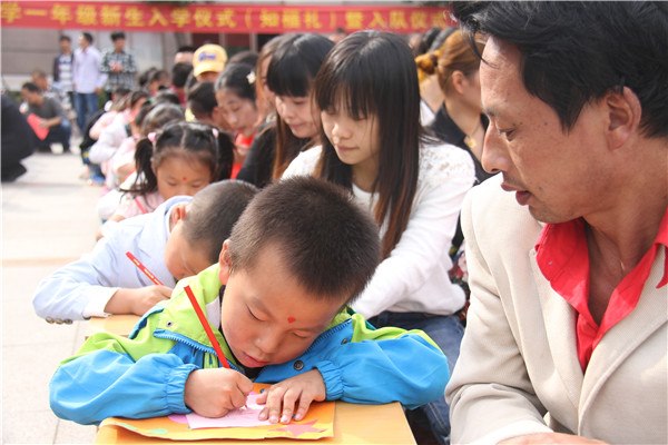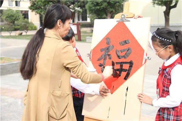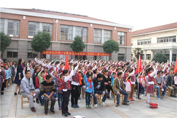 ——马杭中心小学一年级新生入学仪式知福礼)暨入队仪式活动报道     10月的马小,英姿飒爽;   10月的马小,温情激荡;   10月的马小,幸福飞扬!   新学期,新目标;   新队员,新梦想!   一个“福”字,萦绕校园……   10月10日下午,马杭中心小学一年级入学仪式知福礼)暨入队仪式在佇歌广场如期举行,参加本次活动的有学校领导、一年级全体师生、家长、五年级队员及全校大队委员。 作为一名一年级的新学子,迎着开学的第一缕阳光,来到美丽的马小,心中时刻涌动着激动与梦想。随着智慧钟声的敲响,徐亚洁校长首先发表了热情洋溢的致辞,对新学子及家长们的到来表示热烈的祝贺与欢迎,还与在场的嘉宾共同分享了一个个幸福理念。 在学礼仪部分,余京艳老师带领大家诵读了《三字经》中的节选部分,透过朗朗的读书声,让在场的每一位都感受到学子们对“为人子,方少时;亲师友,习礼仪”的那一份懵懂与向往。正衣冠、知道自理;知尊师、行鞠躬礼;学交往、行握手礼;懂孝道、行拥抱礼……一个个学礼仪环节,学子们顿时变得衣冠整洁,精神抖擞,懂得团结友爱、感恩师长,进一步弘扬了中华民族的礼仪之福。 朱砂启智,古语称“开天眼”,用朱砂在学子们的额头正中点上红痣,希望孩子们今后眼明心亮,能好读书、读好书。此环节由徐校长与各班班主任老师为孩子们点朱砂“启智”,寓意开启智慧,共同描绘幸福的明天! 马小的核心理念就是“从幸福走向幸福”,开启幸福智慧之后,书法组蒋惠芬老师示范写“福”字,还向学子们介绍“福”字的由来及寓意,并让学子们一起跟着描“福”,一个“福”字,寄予大家太多的期望与祝福。之后,(1)班的刘宇小朋友带领大家领宣了马小十好习惯、马小学风、24字社会主义核心价值观等幸福誓言。 在响彻云霄的宣誓声中,孩子们还将心中的誓言化作一个个美丽梦想,写在心愿卡上,与爸爸妈妈一起将卡片装入各班心愿箱,等到十岁时的惜福礼、毕业时的行福礼,将会再次打开心愿箱,共同回味这一幸福时刻! 为喜迎第66个中国少年先锋队建队日的到来,紧接着开启了一年级新生入队仪式。小朋友们个个神采飞扬,精神抖擞地期待着这一刻的来临。在出旗曲、队歌声之后,大队委员依次向大家展示了国旗、党旗、团旗、队旗以及队徽,并且重温了它们的深刻内涵,让在场的每一个人都学到了队知识,懂得了党团队之间的关系,懂得“抗日战争暨世界反法西斯战争胜利70周年”的来之不易。 随即大队辅导员宣读了各中队辅导员及新队员名单,并且由年级的大哥哥大姐姐给新队员佩戴红领巾摸着胸前飘扬的红领巾,少先队员们将“从小学习做人、从小学习立志、从小学习创造”“立志向、有梦想,爱学习、爱劳动、爱祖国”的誓言铭记在心,并且表示:虽然来自五湖四海,但能在马小这样一个大家庭中快乐学习,感到无比幸福 一年级新生入队仪式在呼号声与退旗曲中落下帷幕,但对于一年级的新队员来说,这更是每个人美好征程的起航一年级队员的学习、生活才刚刚开始,相信他们会朝着队旗飘扬的方向一路前行! 最后,队员们跟家长一起手拉手穿越幸福门,步入教室,开启幸福家长会的一课!     智慧钟声,敲响礼节之福;   朱砂启智,开启智慧之福;   入队仪式点燃梦想之福。   你我同携手,不管风雨沧桑。   坚信着,从幸福的此岸到达幸福的彼岸;   坚信着,从这一站幸福驶向下一站幸福…… (马杭中心小学教育集团德育办供稿。撰稿:周建强;摄影:周建强