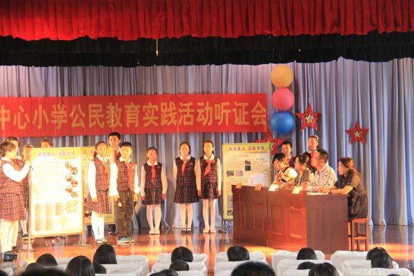 公民教育,你我有约! ——马杭中心小学教育集团“公民教育现场听证会”活动报道   “家事、国事、天下事,事事关心”这是我们马杭中心小学教育集团公民教育实践活动的最终目标。613日下午,在马杭中心小学教育集团的五年级学生辅导员老师及家长代表们再次相聚马小幸福剧场,又一次唱响公民教育主旋律,由集团本部分管德育周小萍副校长、德育办周建强及相关辅导老师担任此次活动的听证员。 小公民在这里展示 今天,孩子们分别围绕五(12)班由蒋军艳杨建媛指导的《关爱老人,温暖夕阳——关于养老问题的调查研究》;五(34)班邵晓玲 、张荷香指导的《关于公共自行车使用及管理情况的研究》;五(56)班张晓丹、吴旻老师指导的《关于市民广场舞利与弊的研究》等大主题召开了听证会。会上,孩子们从“我们的问题”、“现有的政策”、“我们的方案”和“我们的行动”四个方面对所研究问题进行分析,幸福剧场内一阵阵发表演说的景象扣人心弦,那模样,与人大代表向政府部门提建议没有两样。他们明晰的阐述,沉着冷静的答辩,流畅的发言、与听证员有效、积极的互动,让大家充分感受到孩子们研究的透彻性,精彩场面层出不穷,会场上不时响起阵阵掌声,孩子们扎实、认真的研究态度,勇敢参与活动的表现以及活动中体现出来的主人翁精神、社会责任感、小公民意识、维权意识、良好的语言表达能力等都受到了听证员、在座领导、家长和老师们的一致好评。 听证会后,周小萍副校长对我校六位务实肯干的班主任老师所指导的“公民教育实践活动”予以了充分肯定,为学生能够参与到活动的整过程中感到欣喜,认为活动开展得扎实有效,孩子们能严格按照活动步骤,注重活动的过程,在听证会上能围绕项目内容积极地与听证员沟通,有共识、有议异,非常的真实。 小公民在这里成长 公民教育实践活动是一个全新的教育领域,开设这一活动课程,能够培养出社会发展需要的多面人才。2005年,常州市教育局、武进区教育局及时引进了与美国公民教育中心合作开展的公民教育实践活动,马杭中心小学通过积极申请,有幸成为该研究项目的成员之一。年来,在我校领导的大力支持下,我校小公民成功开展了《关于限塑令的研究》、《马杭居民用水情况研究》、《教科书循环使用问题的研究》、《关于三勤生态园开发和利用的问题研究》、《关于南田文化保护和开发的问题研究》、《关于马杭地区新市民情况的调查研究》、《关于改善新市民居住条件问题的研究》、《关于流浪猫狗问题的调查研究》、《关于学校周边交通环境问题的研究》、《关于废旧电池回收问题的研究》、《关于“中国式过马路”问题的研究与思考》、《关于限塑令问题的调查研究》《关于包书皮使用情况的研究》《关于儿童卡片与小学生身心健康问题的调查研究》、《关于非机动车不按规定行驶问题的研究》、《关于“光盘行动”实施问题的研究》《关流动儿童家庭教育问题的研究》《关于网购安全问题的研究与策略》、《关于安置小区车辆乱停放问题研究》、《关于非机动车安全行驶问题的研究》等在内的几十个实践活动。每次活动的磨练,孩子们各方面的能力都有了进一步提升,考虑问题也更全面了,而且这些活动在、市、区级评比中均能获奖。2009年,我校还成功举办了武进区公民教育实践活动研讨会,为我校小公民展示此项活动成果搭建了平台。 回顾年来走过的历程,我校在公民教育实践活动上经历了“模仿、实践、辐射、渗透”四种跨越,从而培养了一批批能够深入研究、扎实开展此项活动的师生队伍,我们也能深切地感受到马杭中心小学的公民教育实践活动正向着“规范化”、“校本化”、“常效化”、“无痕化”稳步发展。 小公民在这里启航 公民教育实践活动的开展不仅激发了我校学生勇于探究、了解政策、参政议政的意识,更重要的是他们学会了发现与探索、懂得了放弃和坚持、经历了成功和失败、体会了酸甜苦辣。小公民忙大活动,孩子们正变得更加愿积极参加各项活动,对社会中的现实问题也更敏感了,对问题的思考也更成熟了,他们将无形地日益关注学校、关注马杭、关注整个世界的细微变化。我们相信,今后的公民教育实践活动会把马小的“无痕德育”推上一个新台阶。(马杭中心小学德育办供稿  撰稿:周建强    摄影:沈小伟