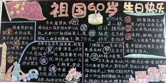 本期板报能针对“祖国母亲,60岁生日快乐!”展开主题内容,从而大力唱响时代主旋律,进一步活跃校园文化生活,鼓励孩子们更加刻苦学习。其中三(1)、四(3)、五(1)、六(4)班的板报更是赢得了小评委们的青睐。