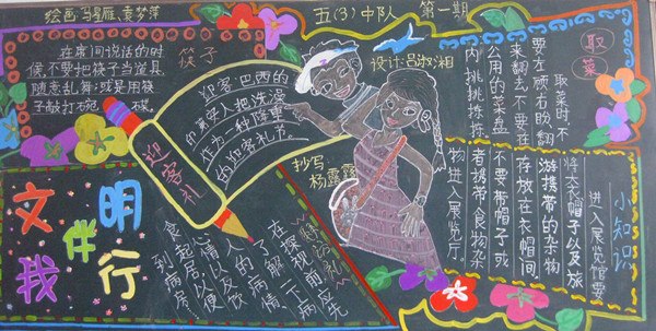 本期板报活动中,各班老师均能带领学生积极搜集资料,利用空闲时间进行创作,一幅幅鲜明生动板报展现在全校师生面前,一篇篇洋洋洒洒的文字,一张张活泼生动的图画,充分表现了队员们对创建文明和谐校园的热情。纵观各班的黑板报,主题鲜明醒目,设计美观合理,编排富有创意,形式多种多样,内容丰富多彩,弘扬和培育了广大学生的爱国主义精神,进一步凝聚了班级文化建设,无声息地激发着队员们倍加珍惜今天的幸福生活,懂得刻苦学习。 在本期黑板报评比活动,六年级需要出好自己班级及连廊两块黑板报,但班主任老师都能紧锣密鼓地展开工作,精心指导,按时完成任务。在此,对老师及孩子们的辛勤付出表示感谢! 本期板报也存在一些缺点,如部分班级出现错别字,版面设计不够完美,色彩调配不够协调等等,两位美术老师已经向各班宣传委员传达,希各班班主任及时与宣传委员沟通,避免重复情况出现。相信在大家的努力下,我们马小的板报一定会日臻完善! 获奖情况如下:(在文明中队评比中,一等奖加3分,二等奖加2分,三等奖加1分) 一等奖:三(1)、三(7)、三(8)、四(1)、四(6)、五(1)、五(5)、六(1)、六(2)、六(4)、连廊六(1)、连廊六(2)、连廊六(3)、连廊六(4 二等奖:三(2)、三(3)、三(5)、三(6)、四(2)、五(3)、五(6)、六(3)、六(5)、六(6)、连廊六(5)、连廊六(6 三等奖:三(4)、四(3)、四(4)、四(5)、五(2)、五(4      下面是各班板报照片,供大家一起欣赏)                                                                                                                                                              武进马杭中心小学少先队                                                                                  2012年9月