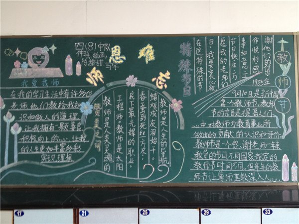本期板报活动中,各班老师均能带领学生积极搜集资料,利用空闲时间进行创作,一幅幅鲜明生动板报展现在全校师生面前。纵观各班的黑板报,主题鲜明醒目,设计美观合理,编排富有创意,形式多种多样,内容丰富多彩,弘扬和培育了广大学生的爱国主义精神,进一步凝聚了班级文化建设,无声息地激发着队员们倍加珍惜今天的幸福生活,懂得刻苦学习。 在本期黑板报评比活动,五、六年级需要出好自己班级及连廊两块黑板报,但班主任老师都能紧锣密鼓地展开工作,精心指导,按时完成任务。在此,对老师及孩子们的辛勤付出表示感谢! 本期板报获奖情况如下:(在文明中队评比中,一等奖加3分,二等奖加2分,三等奖加1分) 一等奖:三(4)、三(5)、四(3)、四(5)、五(1)、五(2)、五(6)、 连廊五(4---五(6)、六(3)、六(5)、六(6)、连廊六(3 二等奖:三(1)、三(2)、三(3)、四(2)、四(6)、四(8)、五(3)、五(4)、连廊五(1---五(3)、六(2)、连廊六(4)、连廊六(5 三等奖:三(6)、三(7)、四(1)、四(4)、四(7)、五(5)、六(1)、六(4)、连廊六(1)、连廊六(2)、连廊六(6      下面是各班板报照片,供大家一起欣赏) 马杭中心小学教育集团本部少先队                                      2013年9月9